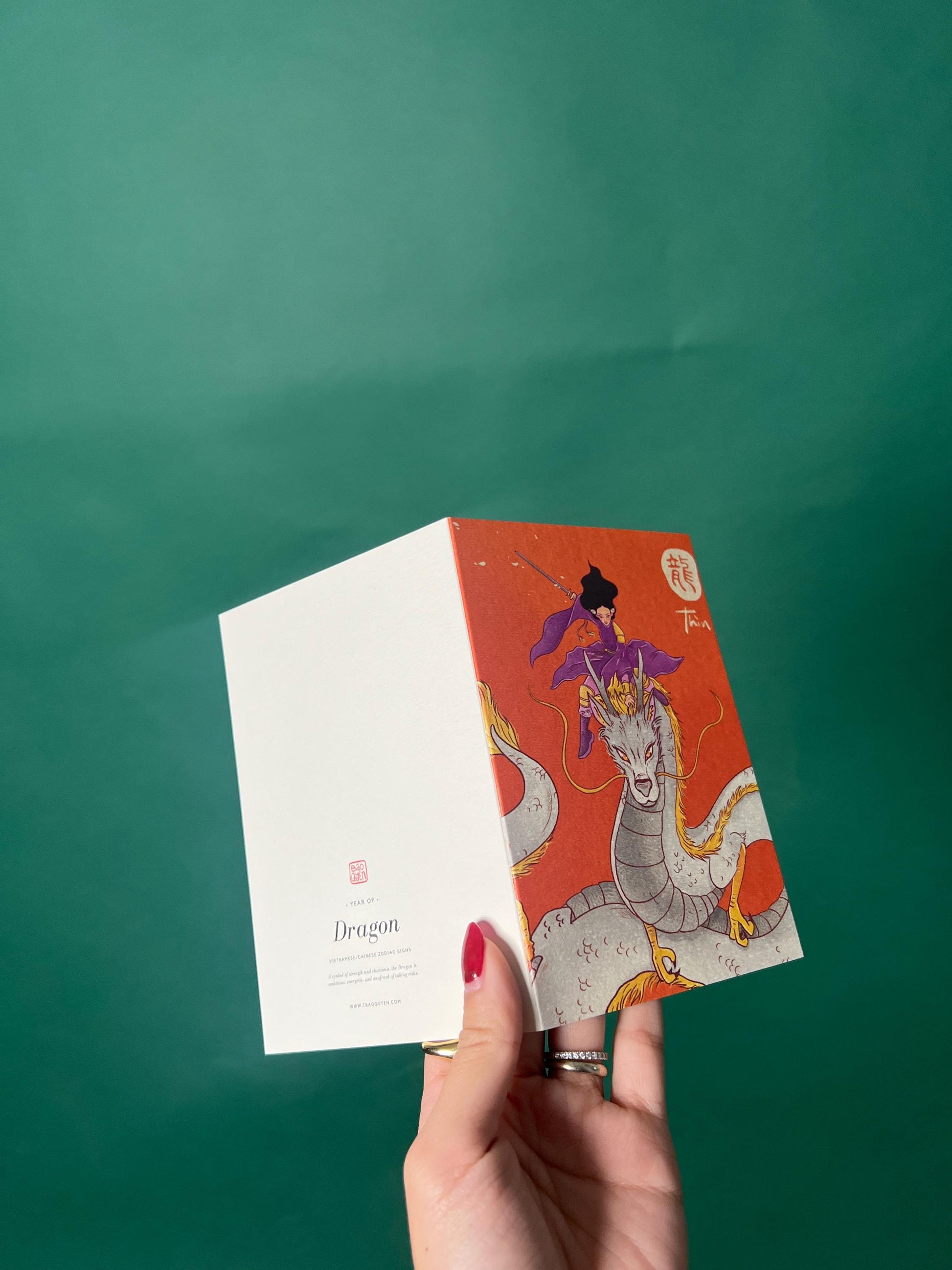This Dragon zodiac art print is an original illustration by Bao Quyen, printed on high-quality 300g textured paper for a premium, gallery-style finish with rich colour depth and fine detail.