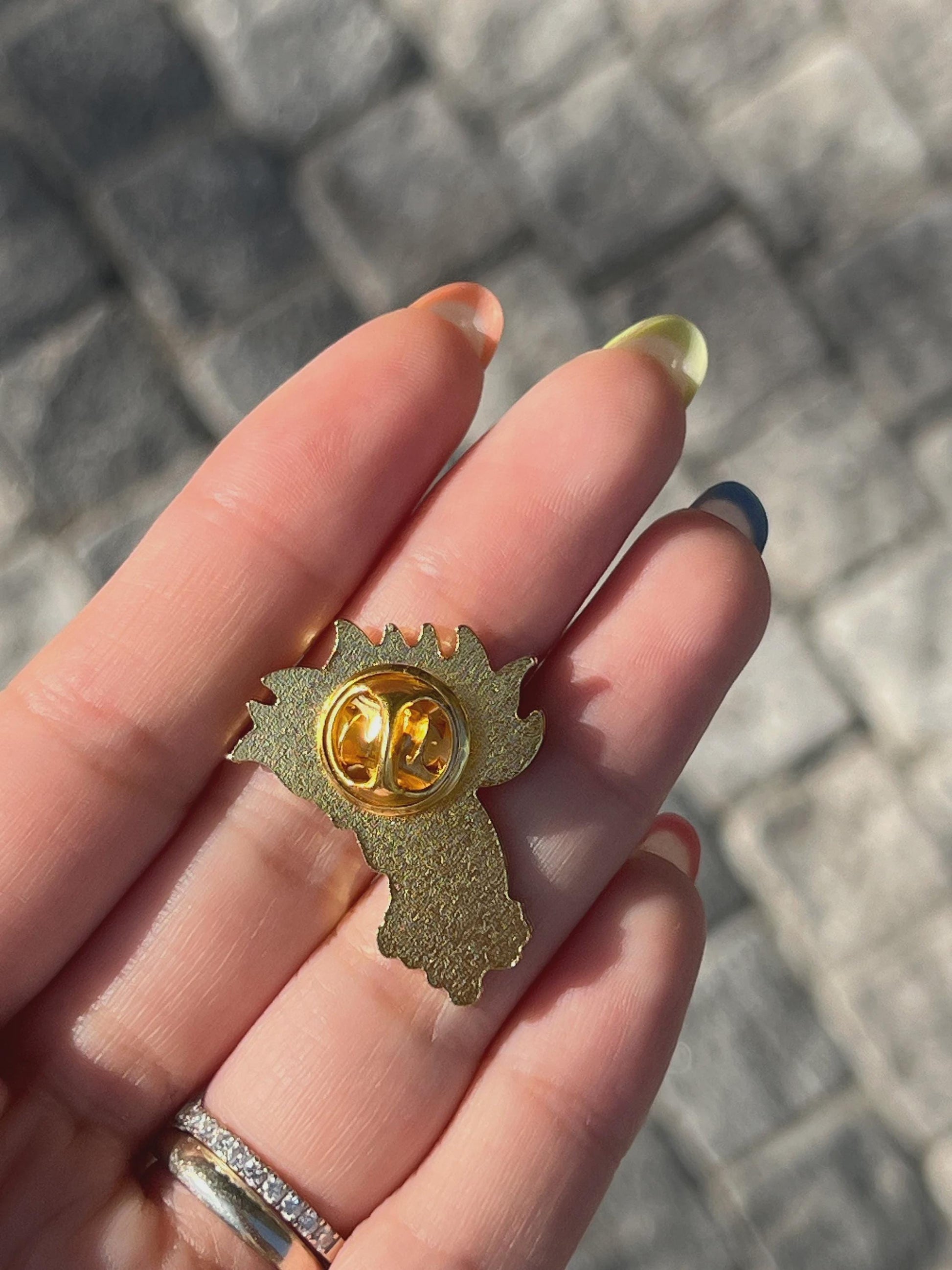 - Pin and illustrated backing card designed by the artist